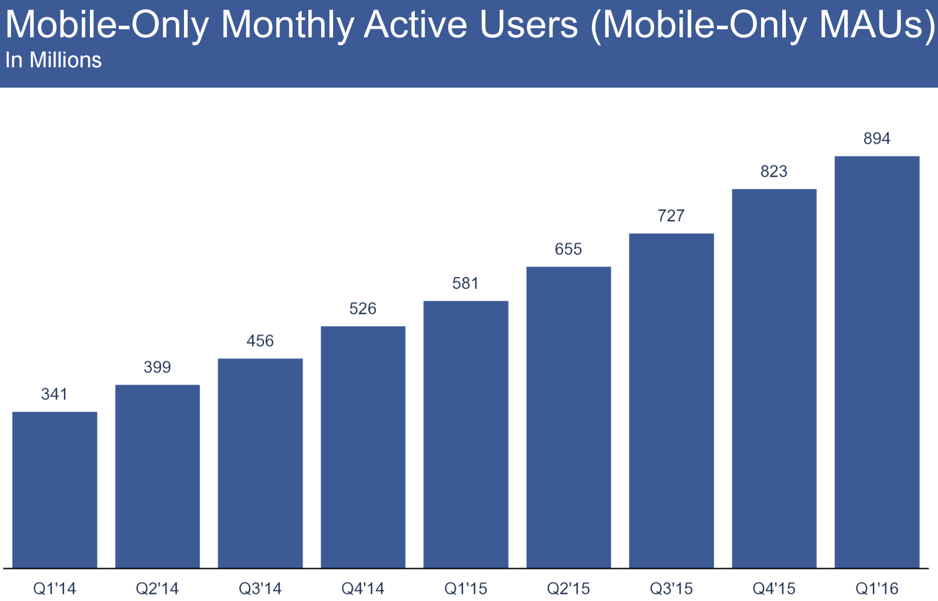 2016'da Facebook , gelirinin %84'ünü mobil reklamlardan elde etti ve Google'a kıyasla, reklam gelirinin %60'ından daha azını mobilde reklam yayınlamaktan elde etti.